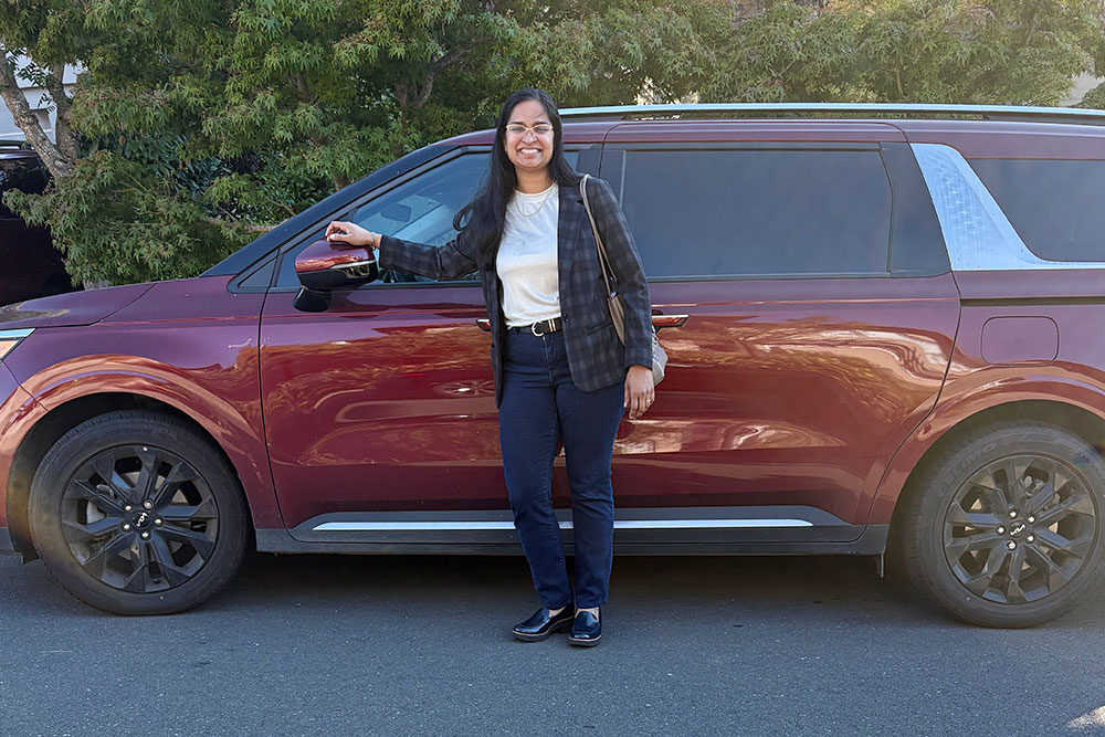 Dr. Mandal with her minivan, in which she ferries around her kids or her neighbors who want to voice their opinions in municipal forums. photo: courtesy R. Mandal