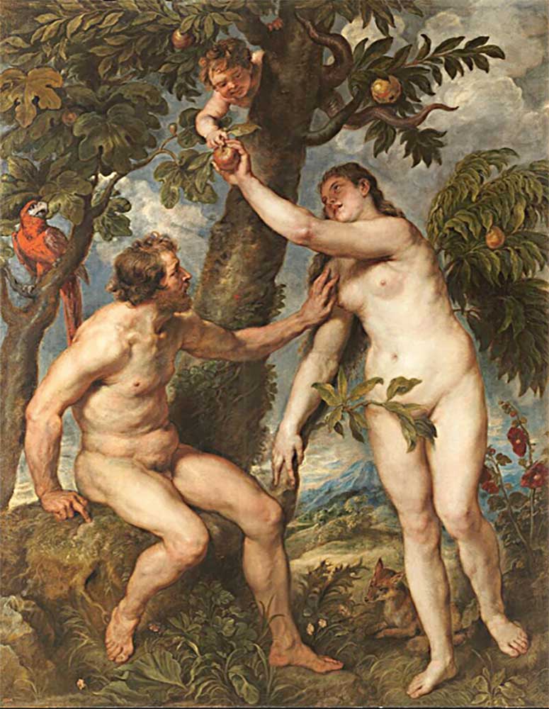 Although Christians claim Eve is a fallen woman who betrayed the Lord, the Biblical authors indicated she derived knowledge from researching reproduction and remained its great repository, while Adam was a naive adolescent until forced to become a farmer after expulsion from the Garden of Eden. Image: Titian
