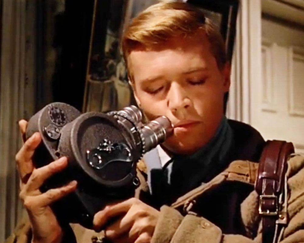 Tortured, snuff filmmaker Mark Lewis, played by Carl/Karlheinz Böhm within Michael Powell's 'Peeping Tom' (1960), nuzzles his instrument, an unusual excuse for a muse. photo: courtesy Sony Pictures