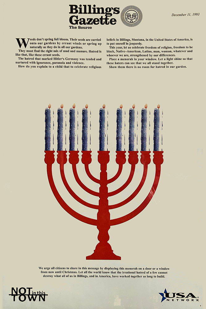 The menorah printed by The Billings Gazette and eventually hung in over 6,000 homes and businesses. image: The Billings Gazette
