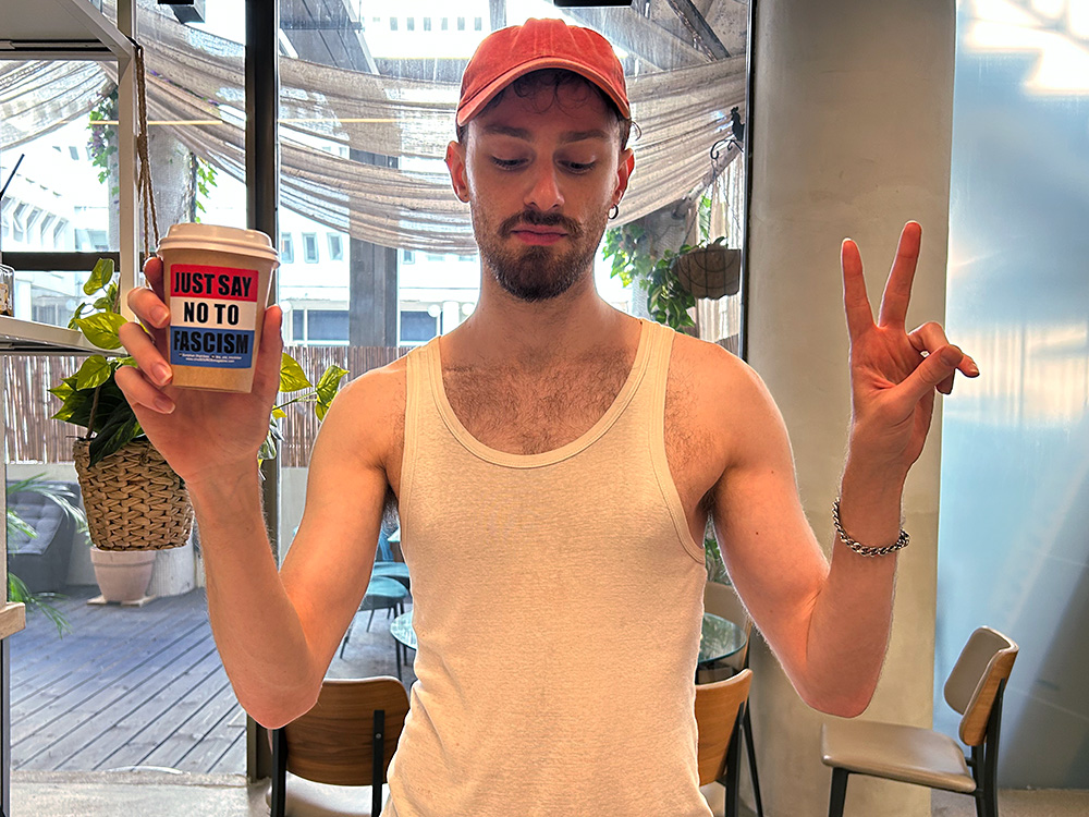 Another Israeli hitchhiker who said the upcoming election would be his first time voting and that he preferred centrist candidates (11/20/25). photo: D. Blair