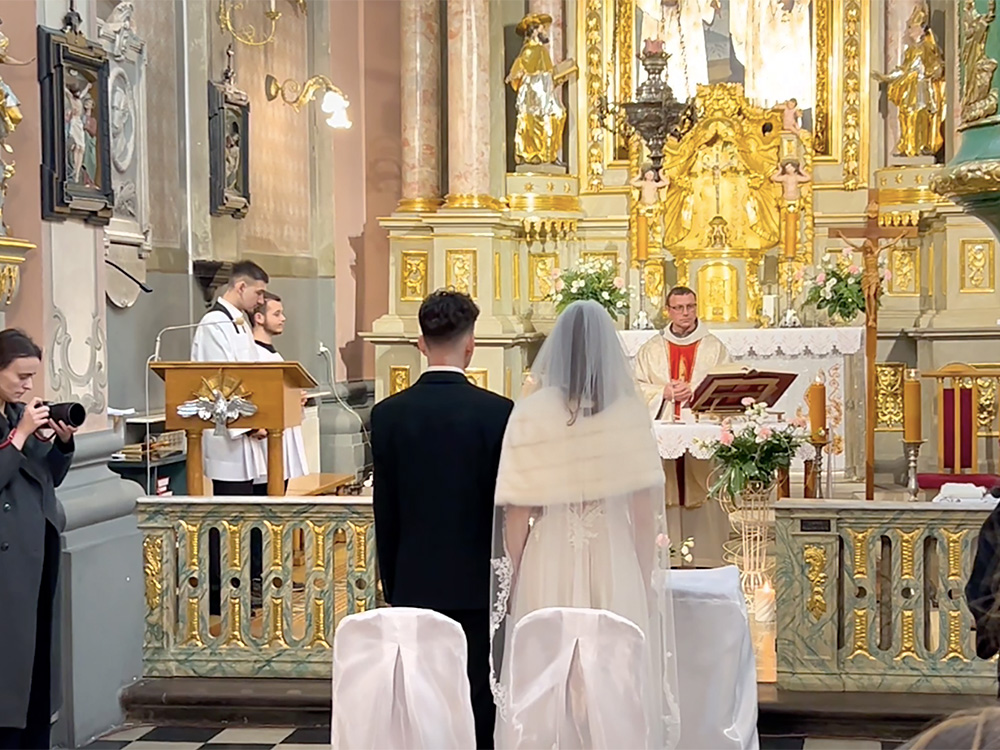 Vasyl and Olenka's wedding in a smallish Ukrainian Orthodox church on the hill overlooking Lviv (10/26/25). photo: D. Blair